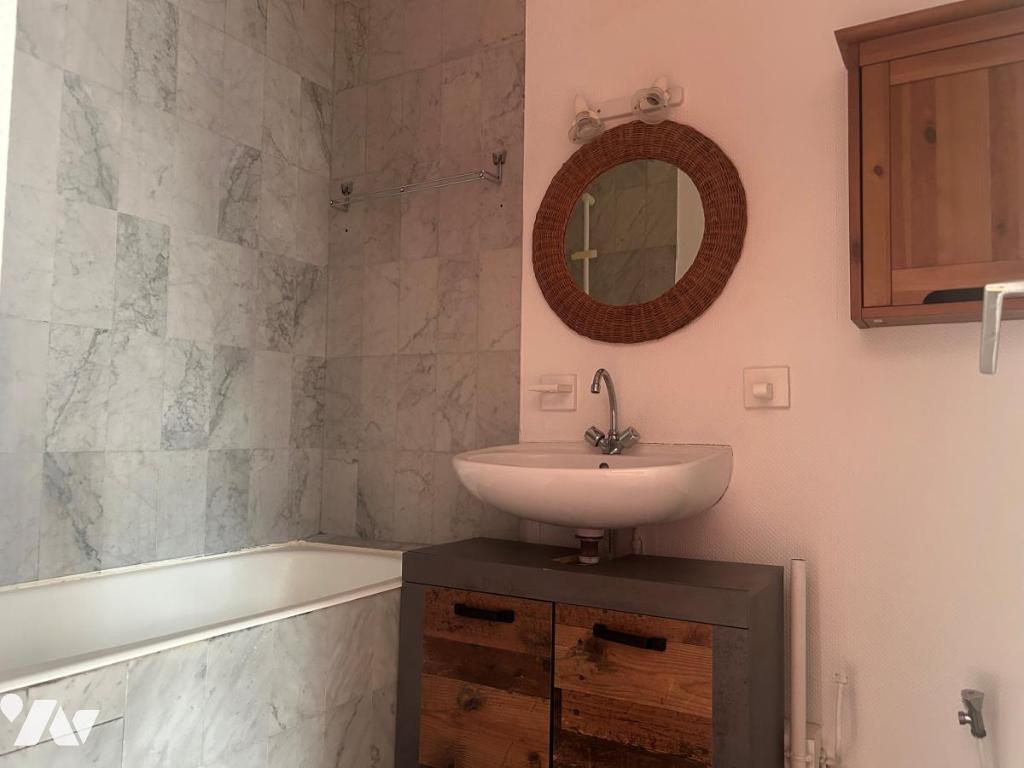 Il se compose : d'un coin cuisine 2,59 m², d’un séjour lumineux de 14,38 m² avec sol stratifié, d’une chambre de 11,55 m² avec placards et salle de bains attenante 3,50 m², de WC séparés.